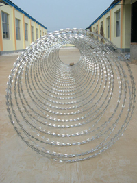 Razor wire is a mesh of metal strips with sharp edges whose purpose is to prevent passage by humans. Razor wire is much sharper than the standard barbed wire. The multiple blades of a razor wire fence are designed to inflict serious cuts on anyone attempting to climb through and therefore have a strong psychological deterrent effect. In many high-security applications, barbed wire, which could be circumvented quickly by humans without tools, while penetrating razor wire barriers without tools is very slow and difficult, giving security forces more time to respond.